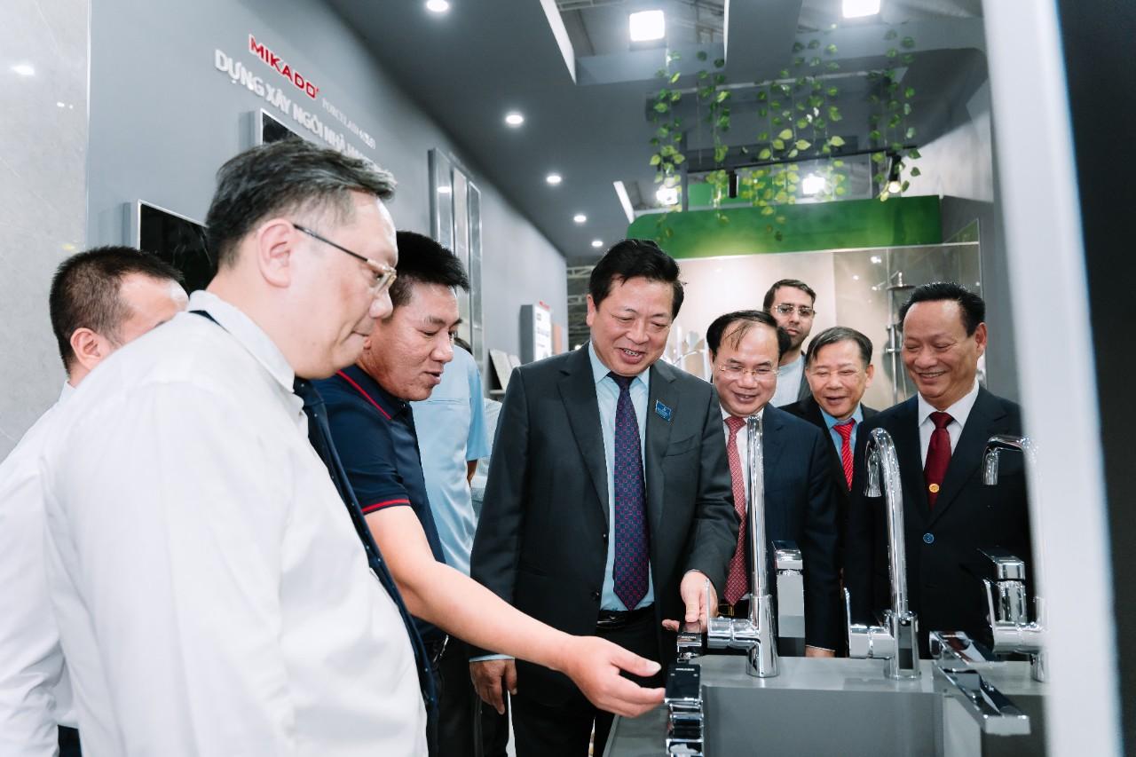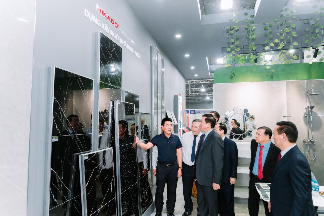 Đặc biệt, ngay trong ngày khai mạc (24/9/2025), gian hàng MIKADO vinh dự đón tiếp Bộ trưởng và Thứ trưởng Bộ Xây dựng tới tham quan. Sự hiện diện của lãnh đạo ngành không chỉ là lời động viên mà còn là minh chứng cho sự phát triển của MIKADO trong lĩnh vực xây dựng và trang trí nội ngoại thất.